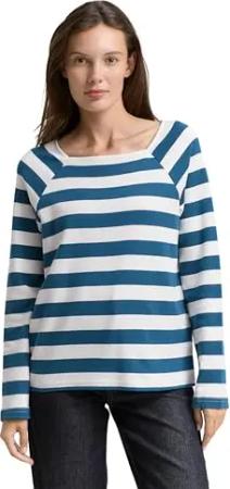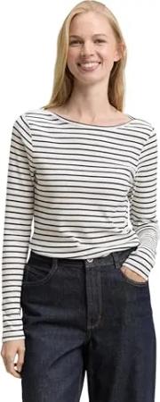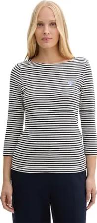 Damen 1045535 T-Shirt, 37370 - Offwhite Navy Regular Stripe, S EU