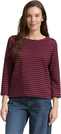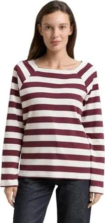 Damen 1048303 Langarmshirt mit Streifenmuster, 39347-Bordeaux Offwhite Stripe, XXL