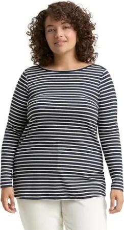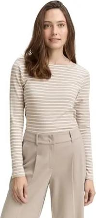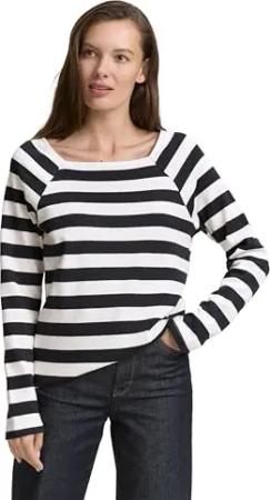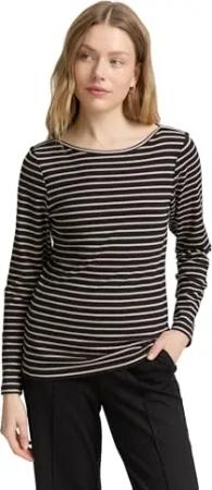 Damen 1048303 Langarmshirt mit Streifenmuster, 38844-Lunar Eclipse Offwhite Stripe, XXL