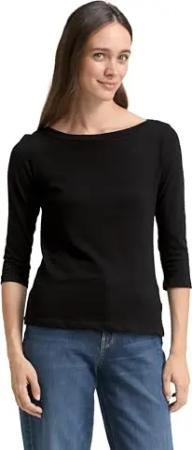 Damen Basic T-Shirt mit 3/4-Arm, 14482 - Deep Black, M