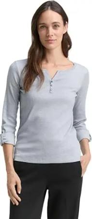 Damen Henley Longsleeve mit Streifen aus Bio-Baumwolle, 36483 - Light Fjord Blue White Stripe, XL