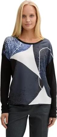 Damen 1044948 Longsleeve T-Shirt, 36556-Navy Watercolor Squares Design, 44