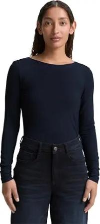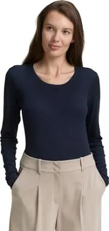Damen Slim Fit Langarmshirt mit U-Boot-Ausschnitt, blau, Uni, Gr. XXL