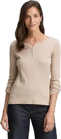Damen 1047760 Basic Slim Fit Langarmshirt, 27506 - Dark Pecan Brown, M EU