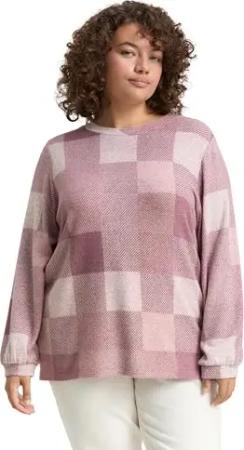 Damen 1044923 Longsleeve T-Shirt, 38729 - Berry Cosy Check, S EU