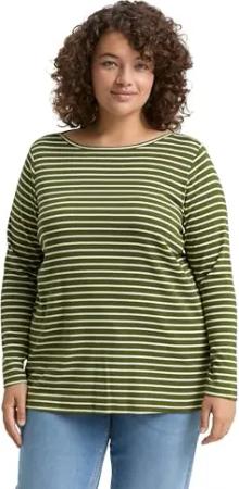 Damen 1048303 Langarmshirt mit Streifenmuster, 38845-Petrol Blue Offwhite Stripe, XXL