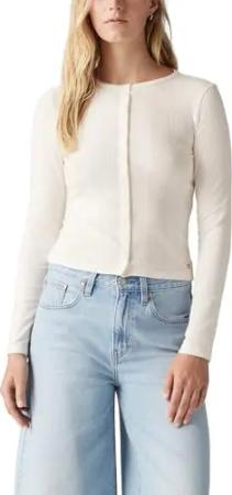 Damen Long-Sleeve V-Neck Baby Tee T-Shirt, White +, XS
