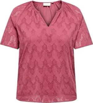 Damen große Größen Übergrößen Plus Size Pyjama-T-Shirt, Paspel, Rundhals, Halbarm, Biobaumwolle Beere 46+ 820107339-46+