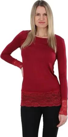 Langarm Longshirt mit Spitzensaum 0998 - Dunkelgrau M/L