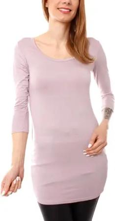 Damen Basic 3/4 Arm T-Shirt Rundhals - langes Unterziehshirt - Longshirt Skinny Fit 1098 - Mauve S/M