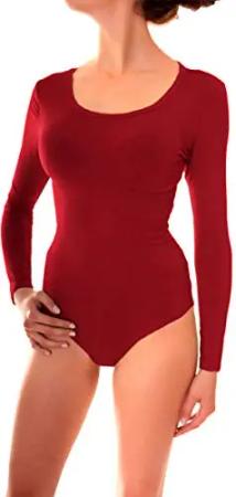 Damen Basic Langarm Body Skinny Fit - Rundhals Dunkelrot