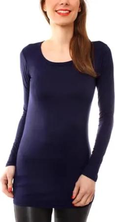 Damen Basic Langarmshirt - Rundhals Longshirt - Unterziehshirt Skinny Fit 1098A - Dunkelblau S/M
