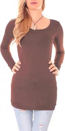 Damen Basic Langarmshirt - Rundhals Longshirt - Unterziehshirt Skinny Fit 1098A - Dunkelbraun M/L