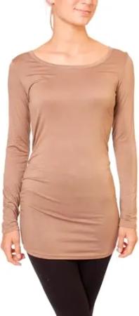 Damen Basic Langarmshirt - Rundhals Longshirt - Unterziehshirt Skinny Fit 1098A - Hellbraun M/L