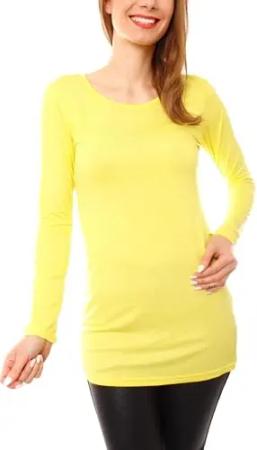 Damen Basic Langarmshirt - Rundhals Longshirt - Unterziehshirt Skinny Fit 1098A - Lemon Gelb S/M