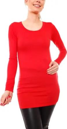 Damen Basic Langarmshirt - Rundhals Longshirt - Unterziehshirt Skinny Fit 1098A - Rot S/M