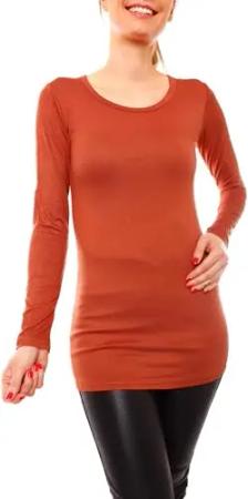 Damen Basic Langarmshirt - Rundhals Longshirt - Unterziehshirt Skinny Fit 1098A - Terracotta S/M