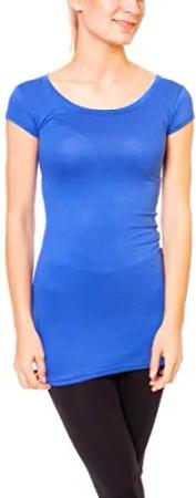 Damen Basic T-Shirt - langes Kurzarm Longshirt - Rundhals Longsleeve - Unterziehhemd Skinny Fit 1002 - Blau M