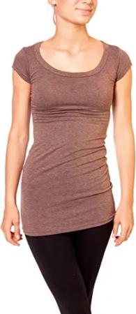 Damen Basic T-Shirt - langes Kurzarm Longshirt - Rundhals Longsleeve - Unterziehhemd Skinny Fit 1002 - Braun meliert M