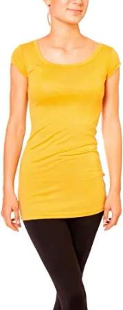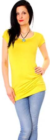 Damen Basic T-Shirt - langes Kurzarm Longshirt - Rundhals Longsleeve - Unterziehhemd Skinny Fit 1002 - Gelb S