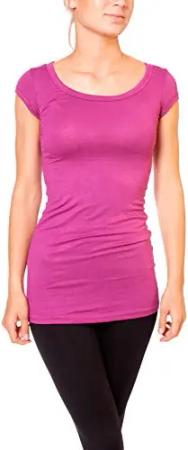 Damen Basic T-Shirt - langes Kurzarm Longshirt - Rundhals Longsleeve - Unterziehhemd Skinny Fit 1002 - Helle Beere S