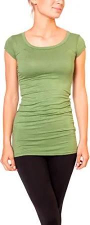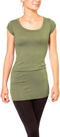 Damen Basic T-Shirt - langes Kurzarm Longshirt - Rundhals Longsleeve - Unterziehhemd Skinny Fit 1002 - Olive S