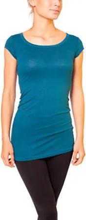 Damen Basic T-Shirt - langes Kurzarm Longshirt - Rundhals Longsleeve - Unterziehhemd Skinny Fit 1002 - Petrol M