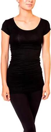 Damen Basic T-Shirt - langes Kurzarm Longshirt - Rundhals Longsleeve - Unterziehhemd Skinny Fit 1002 - Schwarz M
