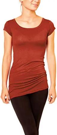 Damen Basic T-Shirt - langes Kurzarm Longshirt - Rundhals Longsleeve - Unterziehhemd Skinny Fit 1002 - Terracotta L