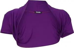 Damen Bolero Jäckchen Kurzarm - elastisch & figurbetont - Basic Schulterjacke - weiche Open Front Jacke 3009 - (Violett)