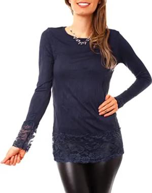Langarm Longshirt mit Spitzensaum 0998 - Dunkelblau S/M