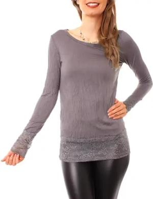 Langarm Longshirt mit Spitzensaum 0998 - Dunkelgrau M/L