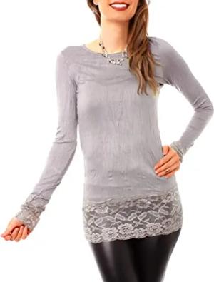 Langarm Longshirt mit Spitzensaum 0998 - Hellgrau M/L