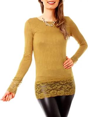 Langarm Longshirt mit Spitzensaum 0998 - Curry S/M