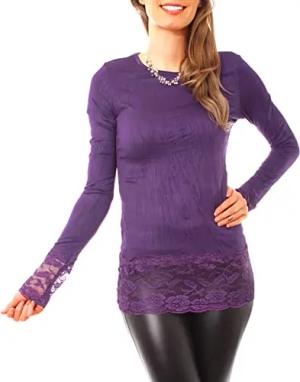 Langarm Longshirt mit Spitzensaum 0998 - Violett S/M