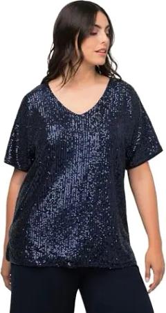 Damen große Größen Übergrößen Plus Size Pailletten-Shirt, Oversized, V-Ausschnitt, Halbarm