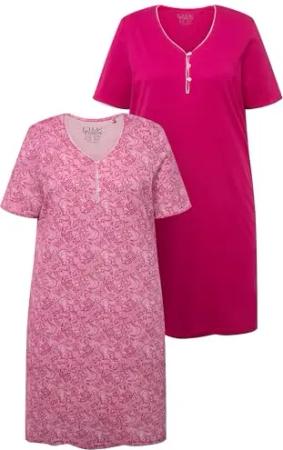 Damen große Größen Übergrößen Plus Size Bigshirts, 2er-Pack, Rundhals/V-Ausschnitt, Halbarm Fuchsia pink 46+ 819289824-46+