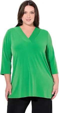 Damen große Größen Übergrößen Plus Size Longshirt, A-Linie, V-Ausschnitt, 3/4-Ärmel moosgrün 58+ 827621451-58+