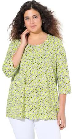 Damen große Größen Übergrößen Plus Size T-Shirt, Blüten, A-Linie, Zierfalten, Rundhals, 3/4-Arm Lime 46+ 829087408-46+