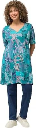 Damen große Größen Übergrößen Plus Size Longshirt, Paisley, A-Linie, Rundhals, Halbarm Mittelblau 66+ 838171759-66+