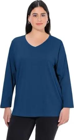 Damen Shirt, V-Ausschnitt, Relaxed, Langarm, Dunkelblau, 54-56 EU
