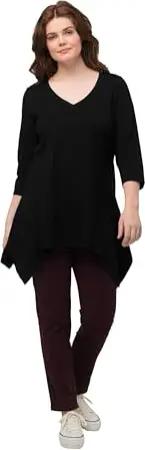 Damen große Größen Übergrößen Plus Size T-Shirt, Pima Cotton, A-Linie, Kelchkragen, Halbarm schwarz 42+ 821287130-42+