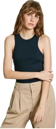 Damen Logo Rib Tank T-Shirt, Blau (Dulwich Blue), L