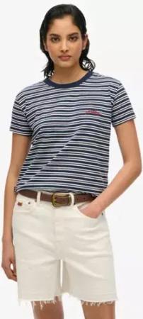 Superdry Damen Figurbetontes Essential T-shirt mit Logo und Streifen Marineblau - Größe: 38