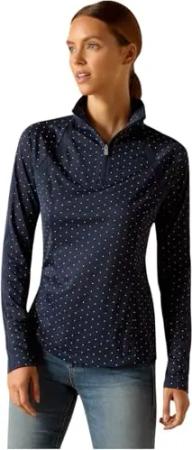 Damen Sunstopper 2.0 1/4 Zip Baselayer, Marineblau Punkte, Groß