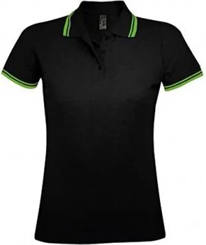 Damen Pasadena Pique Polo-Shirt, kurzärmlig (2XL) (Schwarz/Limette)