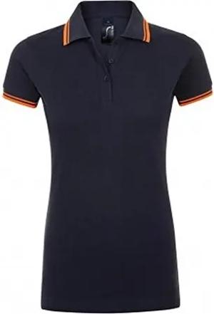 Damen Pasadena Pique Polo-Shirt, Kurzärmlig (S) (Marineblau/Neon-Orange)