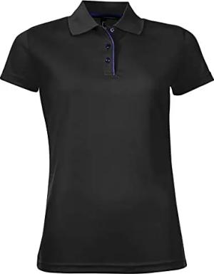 Damen Performer Pique Polo-Shirt, Kurzarm (XL) (Schwarz)