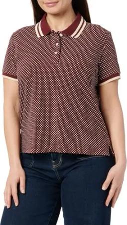 Damen Poloshirt Kurzarm Lyocell Relaxed Fit, Mehrfarbig (Calico/Dark Night Navy STP), 46
