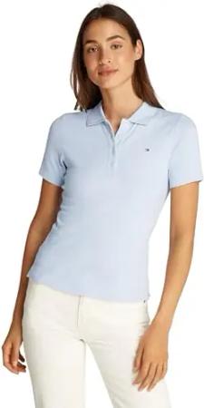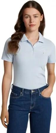 Damen Poloshirt Kurzarm Regular Fit, Blau (Breezy Blue), XS